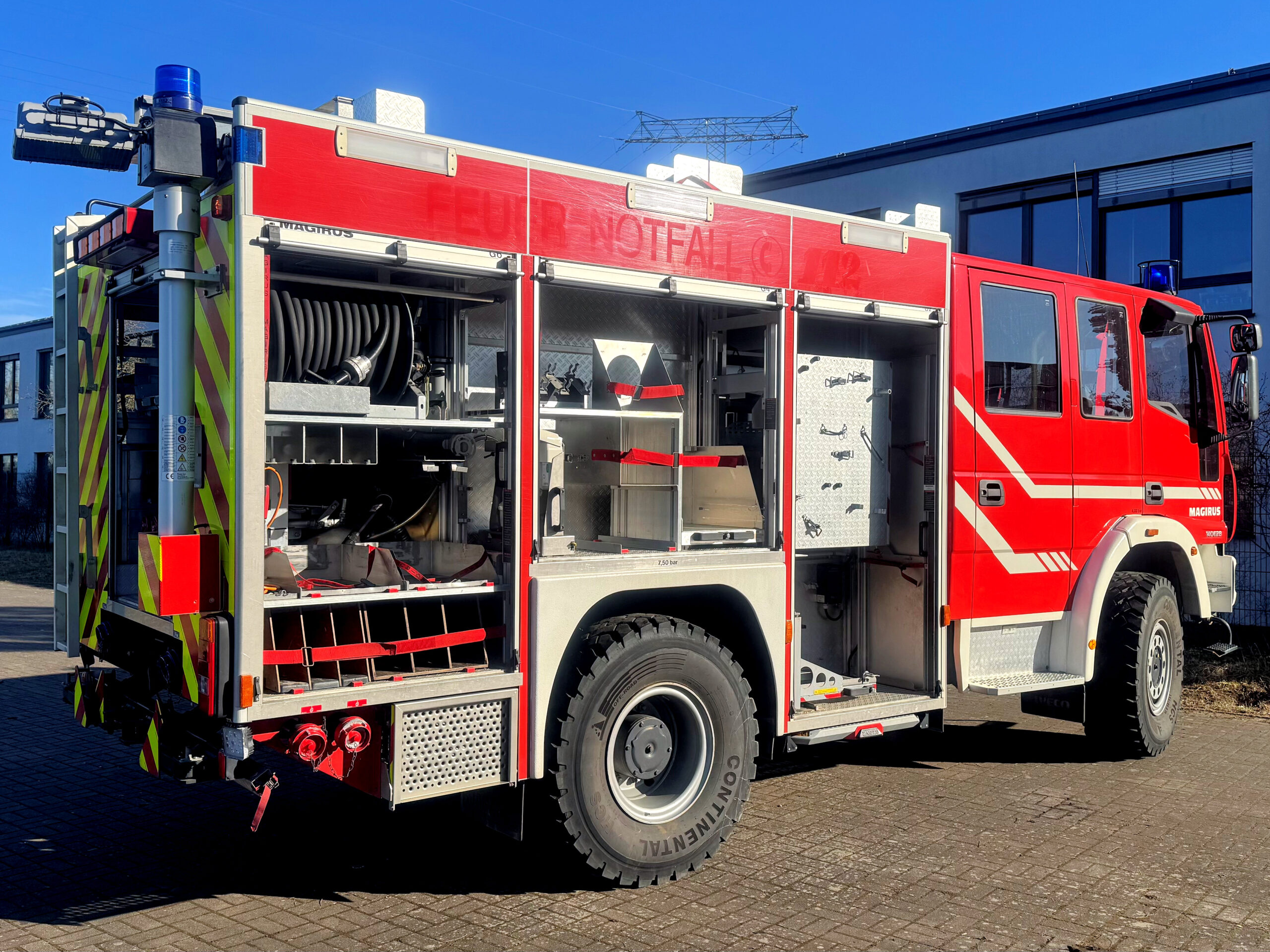 Roof boxDesign: HLF superstructure in accordance with DIN 14530Lifting device for two single-person reels